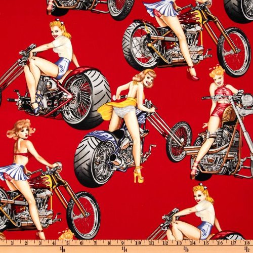 44'' Wide Pin, Designed for Alexander Henry this cotton print fabric is perfect for quilting apparel and home decor accents. Colors include grey red yellow blue and black. Features pin-up girls on motorcycles.