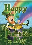 Happy St Patricks Day Leprechaun Shamrock Rainbow Double Sided House Flag