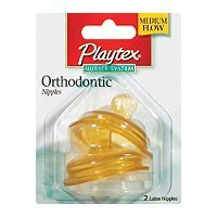 Playtex 0567300, INDICATIONS: Playtex drop-ins system orthodontic latex nipples, medium flow : latex nipple's shape promotes healthy oral development for babies. Playtex Orthodontic Nipple fits comfortably in baby's mouth.
