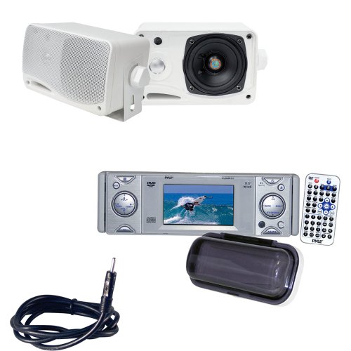 Here are some of the great features of Pyle Marine Radio, Speaker and Cable Package - PLDMR3U In-Dash Marine CD/DVD Receiver with 3'' Built In Monitor - PLMR24 3.5'' 200 Watt 3-Way Weather Proof Mini Box Speaker System (White) - PLMRNT1 22" Weather Resistant Radio AM/FM Marine Wire Antenna Braided Cable